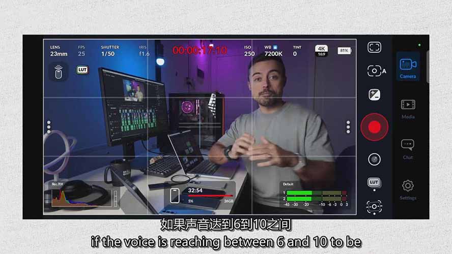 使用Blackmagic Camera或ProShot等手动相机应用程序可以获得最佳效果,如果你有这些应用程序,小型三脚架、lav mic或nd滤镜会有所帮助,但不是必不可少的。