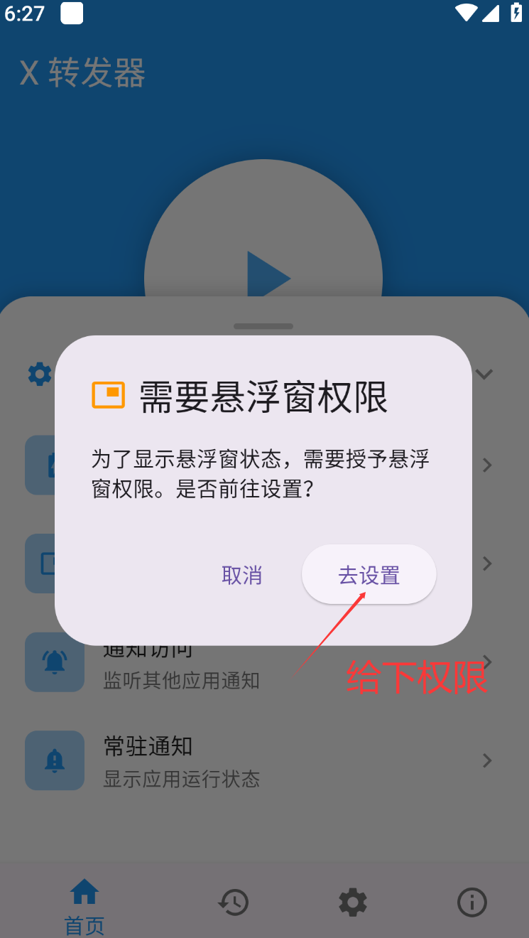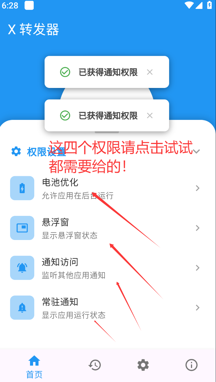 1.先给X转发器通知权限